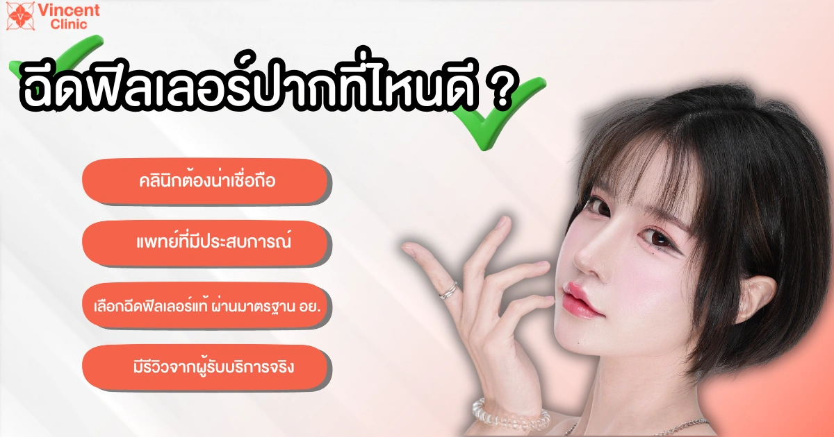 ฉีดฟิลเลอร์ปากเป็นวิธีที่ปลอดภัยและมีประสิทธิภาพในการเพิ่มความสวยงามให้กับริมฝีปาก ไม่ว่าจะเป็นการปรับขนาดหรือรูปทรง รวมถึงการเพิ่มความชุ่มชื้นและการแก้ปัญหาปากแห้ง ผู้ที่สนใจสามารถปรึกษาแพทย์ผู้เชี่ยวชาญเพื่อให้ได้ผลลัพธ์ที่ดีที่สุด สำหรับใครที่มีปัญหาบริเวณริมฝีปากหรืออยากจัดทรงปากให้สวยได้รูปทรงตามต้องการแนะนำให้เข้ามาปรึกษาได้ที่ Vincent Clinic เพื่อให้ทีมแพทย์มากประสบการณ์ด้านหัตถการสกินช่วยประเมินและออกแบบการรักษาที่เหมาะกับรายบุคคล